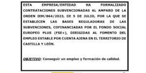 FOMENTO DEL EMPLEO ESTABLE POR CUENTA AJENA 2024 OBJETIVO: Conseguir un empleo y formación de calidad. ESTA EMPRESA/ENTIDAD HA FORMALIZADO CONTRATACIONES SUBVENCIONADAS AL AMPARO DE LA ORDEN IEM/864/2023, DE 5 …
