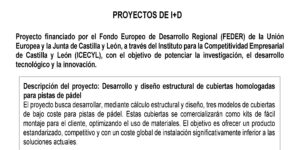 Comercial VALDIVIECO, S.L. desarrolla un Proyecto I+D: Desarrollo y diseño estructural de cubiertas homologadas para pistas de pádel Proyecto financiado por el Fondo Europeo de Desarrollo Regional (FEDER) de la …
